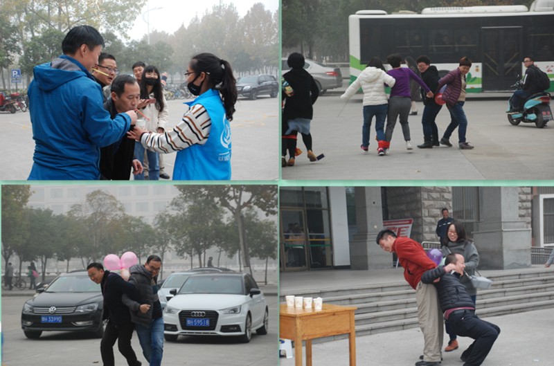 11月13日下午,公司在经管楼前隆重举办第二届教职工趣味运动会,全院教职工分成机关一队、机关二队、工商系队、市场系队、人力系队、旅游系队等6支队伍参赛,院领导分别编入各队与教工一起参加活动。运动会由院工会主办,院团委、院员工会承办。